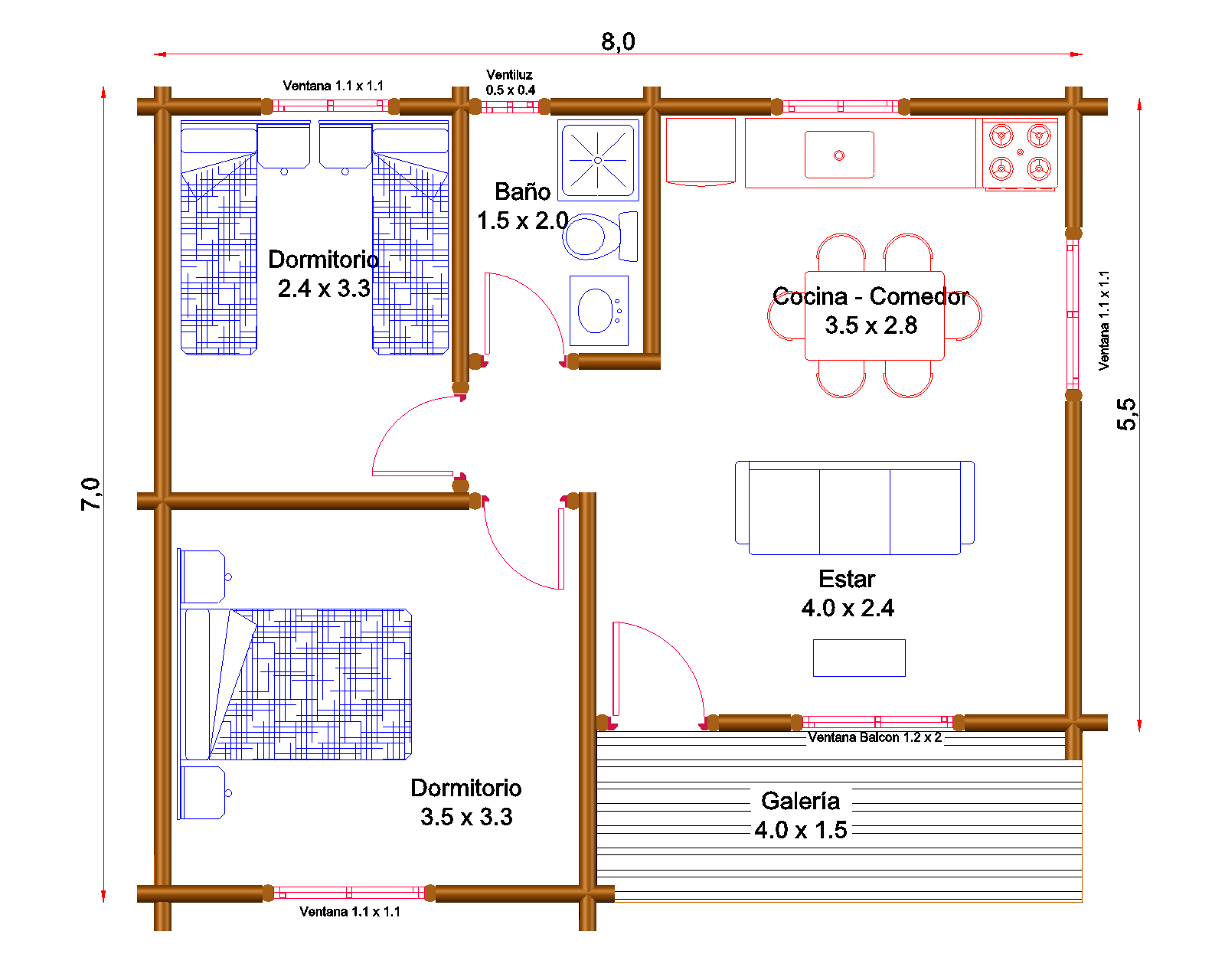 Descubrí esta funcional cabaña de troncos macizos en el Paraje Bella Vista, Olavarría. Sus 56 m² se distribuyen de manera inteligente en un plano de 8×7 metros, optimizando cada metro cuadrado para tu comodidad.